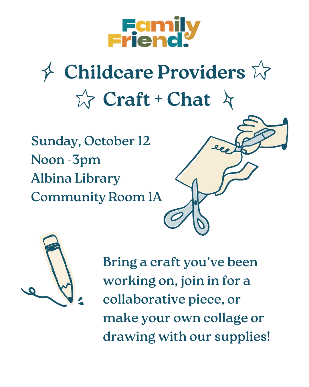 We’ll be setting up the Family Friend creation station booth at Portland Weirdfest, hosted by Weird Portland United. We are excited to offer some weirdly fun crafts, snacks, and a cozy, silly landing spot where kiddos can engage in activities and play together.
