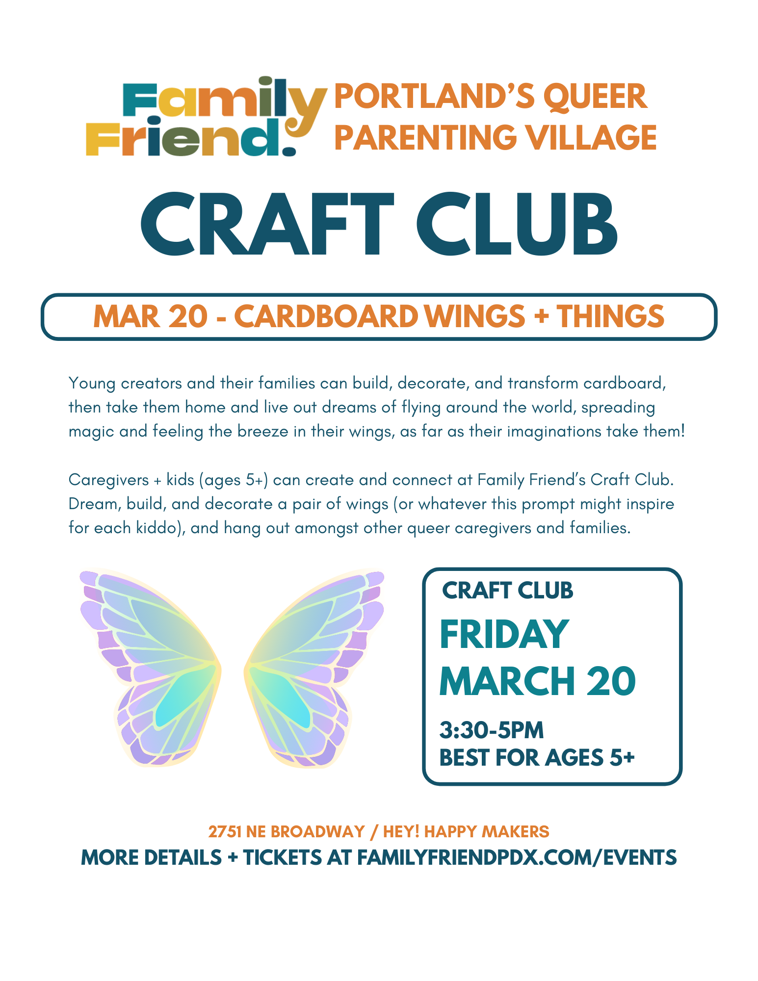 Join us for our second session of the Family Friend Craft Club! We are popping up again at Hey! Happy Makers, a sweet lil’ art studio for kids, to connect and create while building community for LGBTQIA2S+ families and caregivers.