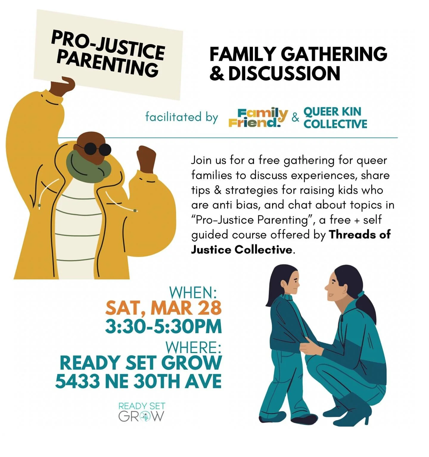 Family Care Practitioner Network: We’re connected to family care practitioners throughout Portland. Need a queer-affirming nanny, screentime coach, or doula? We’re building a strong network of great recommendations.